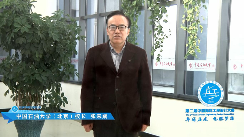 中国工程院院士、海洋石油开发专家、中国科协副主席、中国海洋工程设计大赛学术委员会主任周守为,中国石油大学(北京)校长张来斌,中国海洋工程设计大赛专家委员会主任陈伟以线上视频的方式为大赛致辞,表达了对大赛的成功举办的热烈祝贺。