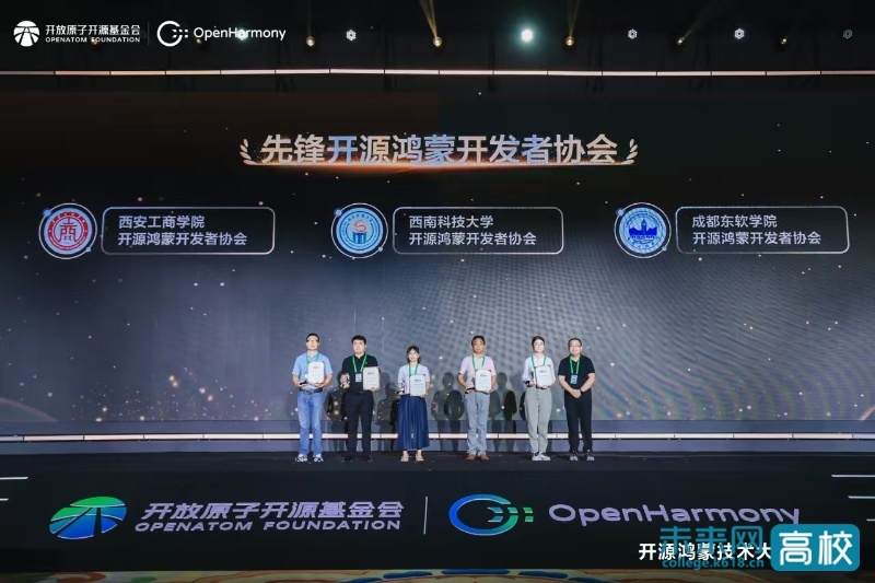 2022年,学校率先在全国高校中突破开源鸿蒙人才培养瓶颈,斩获“鸿蒙生态人才建设灯塔奖”,成为全国首批以鸿蒙技术为核心的应用型人才培养示范高校;同期,学校计算机与软件学院副院长仲宝才因在人才培养体系搭建中的突出贡献,获评“鸿蒙生态人才建设春雨奖”,为学校开源教育奠定“标杆底色”。