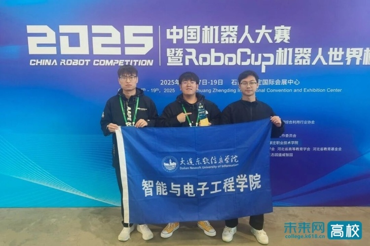 近日,2025中国机器人大赛暨RoboCup机器人世界杯中国赛(中国机器人大赛赛区)在石家庄国际会展中心落下帷幕。大连东软信息学院智能与电子工程学院代表队与来自清华大学、上海交通大学等全国300余所高校近1700支队伍同台竞争,经过三天的激烈比拼,凭借扎实的专业功底和创新的技术方案,最终在“四足仿生机器人—快递运送赛中型组赛项(总决赛)”中获得全国冠军!