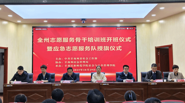 敏贤麟在致辞中表示,本次培训与授旗仪式是甘南州健全志愿服务体系、深化基层治理的重要举措,也是校地协同推进社会治理的具体实践。