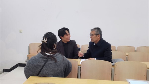 高君智与任课教师围绕课程内容、教学方法、育人成效等方面进行亲切交流,对任课教师扎实的理论功底、生动的教学呈现给予充分肯定。