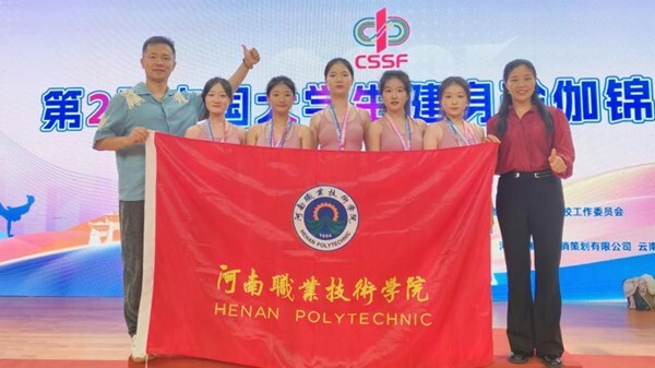 河南职业技术学院瑜伽代表队载誉归来。参赛学生在基础教学部教师韩彩灵、音乐学院教师殷广乐的指导下,凭借精湛技艺与稳定发挥斩获4金1银。