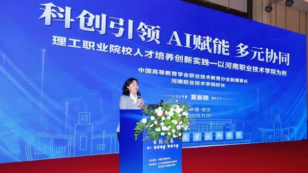 夏新颜以《‘科创引领AI赋能多元协同’理工职业院校人才培养创新实践—以河南职业技术学院为例》为题,系统介绍了学校在人工智能时代服务先进制造业的创新实践。