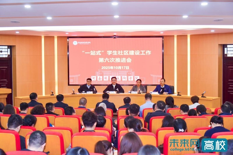 10月17日下午,河南职业技术学院召开“一站式”学生社区建设工作第六次推进会,系统回顾前期工作、对标查找差距,动员全校上下进一步统一思想、凝聚共识,奋力推动学生社区建设提质升级。学校党委书记厉励出席会议并讲话。校党委副书记、工会主席田华,学校党委委员、副校长朱永宽,相关职能部门负责同志,各二级学院党政负责人、党总支副书记、团总支书记及全体专兼职辅导员参会。会议由学校党委委员、副校长任枫轩主持。