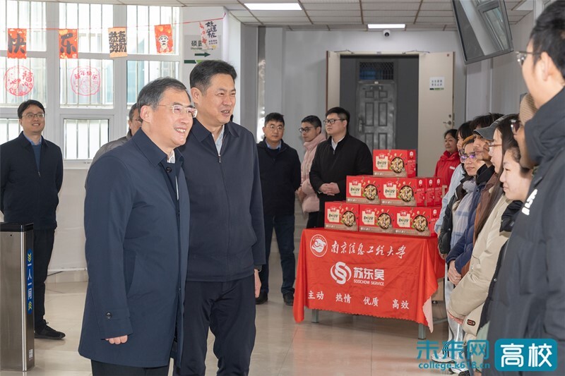 2月13日,南京信息工程大学校园阳光和煦,年意正浓。学校领导尚洪波、陈海山、王培君、朱大梅、沈新奎、马嫣、刘佳、章炎麟一行走访慰问了寒假期间留校的学生,以及各条战线坚守岗位的教职员工,为大家送上“暖心礼包”并致以新春的问候。