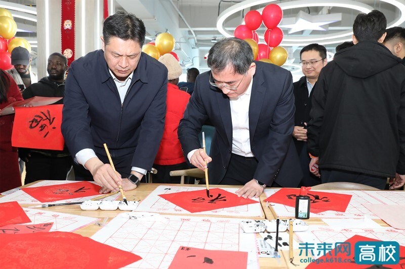 游园会环节热闹非凡。学校党委书记尚洪波、校长陈海山与同学们一起挥毫泼墨,书写“福”字与春联。师生们还巧手裁剪红纸窗花,亲手体验马年主题拓印,在对弈中感受棋趣,深度体验了中国传统文化的独特魅力。投壶纳福、颠球逐福、趣味平衡赛等游戏也让大家收获满满的福气与欢乐。(通讯员:林雯 潘博洋)
