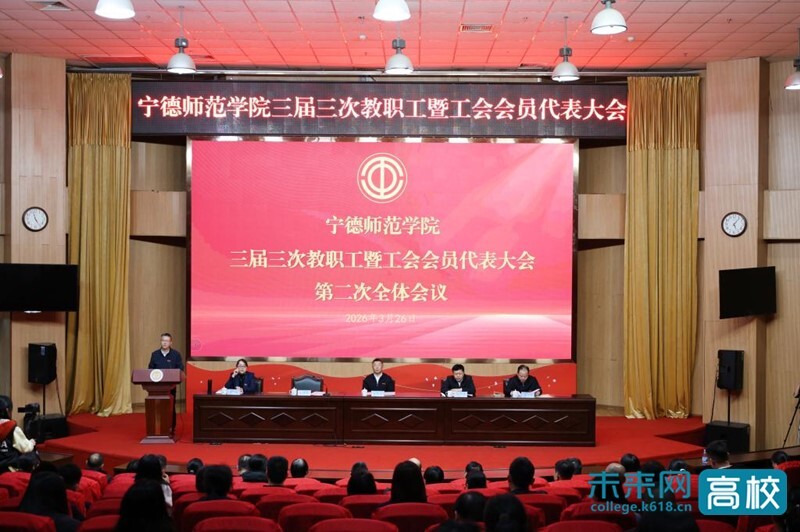3月26日,宁德师范学院三届三次教职工暨工会会员代表大会召开。本次大会是在全面贯彻落实党的二十大和二十届历次全会精神、“十五五”开局起步的关键之年、学校在建设特色鲜明的一流高水平应用型大学的征程上阔步前进的重要之年召开的一次重要会议。全校164名正式代表齐聚一堂,共商学校发展大计。学校党委书记林清泉出席会议并讲话,校长颜桂炀作学校工作报告,学校党委副书记江潮炳主持大会,副校长应少明、袁珮出席会议。