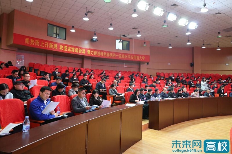 颜桂炀做了《乘势而上开新局 攻坚克难谱新篇 奋力建设特色鲜明的一流高水平应用型大学》的学校工作报告,回顾总结“十四五”时期和2025年学校工作取得的成绩,分析了存在的困难与问题,明确了未来五年学校发展方向与重点任务,并根据学校工作总体要求,对学校2026年的重点工作进行了安排。他强调,2026年全校上下要紧扣“十五五”发展规划目标,以“提质扩容、强基培优、创新突破、融合发展”为主线,扎实推进“三项工程”和“六项行动”,坚持党建领航固本强基,擘画学校发展崭新蓝图,聚焦内涵转型提质增效,推动办学实力跨越提升,完善现代治理体系建设,赋能办学效能提档升级,努力建设省内一流高水平应用型本科大学,为服务教育强国、教育强省建设和区域高质量发展作出新的更大贡献!