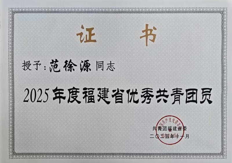 宁德师范学院范徐源获评“2025年度福建省优秀共青团员”