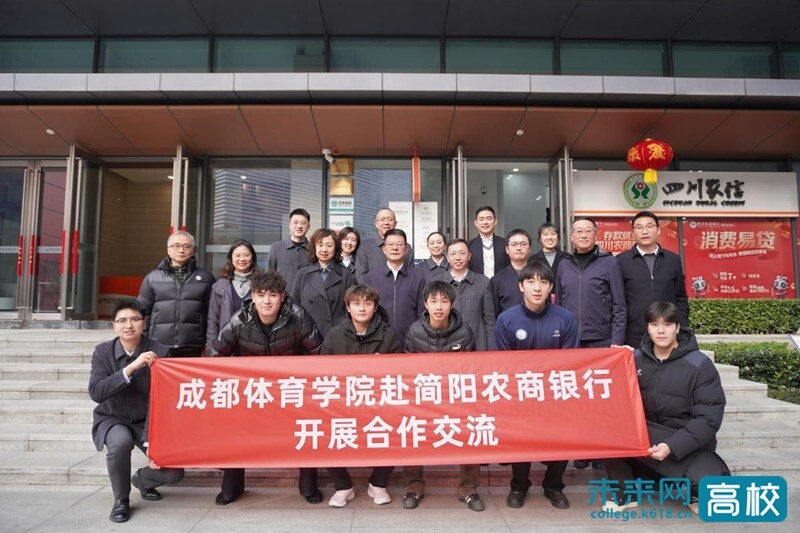 1月13日,成都体育学院党委副书记、校长胥万兵带队赴四川简阳农村商业银行股份有限公司开展访企拓岗专项行动。学校党委常委、副校长邬红丽陪同,学生处、运动训练学院、足球运动学院相关负责人及学生代表一同参与交流。
