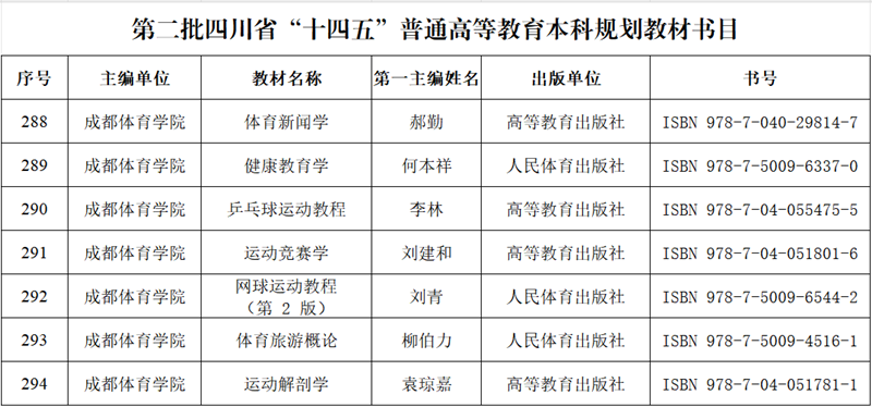 成都体育学院7部教材入选第二批四川省“十四五”普通高等教育本科规划教材