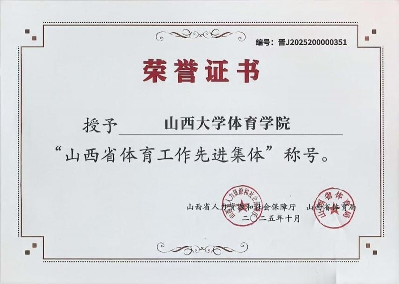 山西大学体育学院获“山西省体育工作先进集体”荣誉称号