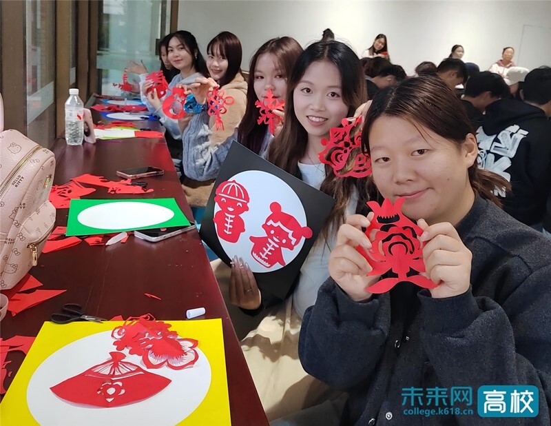 参观结束后,活动进入剪纸体验环节。在讲解员的细致指导下,中外学子纷纷动手,从折纸、勾勒到剪制,一步步完成属于自己的剪纸作品。现场气氛活跃,红纸翻飞间,中外学生相互交流创作心得,在协作中感受中国传统手工艺的独特魅力。