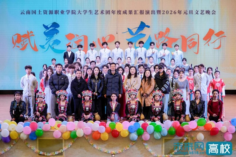 12月26日晚,云南国土资源职业学院团委大学生艺术团年度成果汇报演出暨2026年元旦文艺晚会温情启幕。学校党委副书记李昆峰、副校长张云霞、机电工程学院副院长于兰、校团委副书记熊欢、各学院团总支书记等师生千余名共同见证了这场青春盛会。