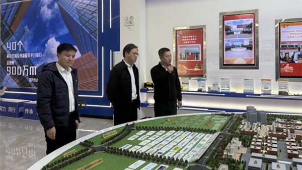 沈韬一行在园区运营方负责人的陪同下,先后参观了园区整体规划展示中心、部分代表...