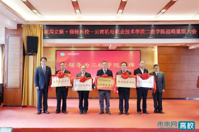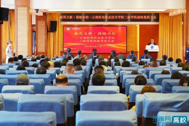 10月17日下午,云南机电职业技术学院以“破局立新·强链兴校”为主题,召开二级学院战略重组大会,对5个二级学院进行重组更名,以“学院重组更名+专业集群”模式深化教育改革,主动对接云南产业需求,为区域经济高质量发展注入职教动能。