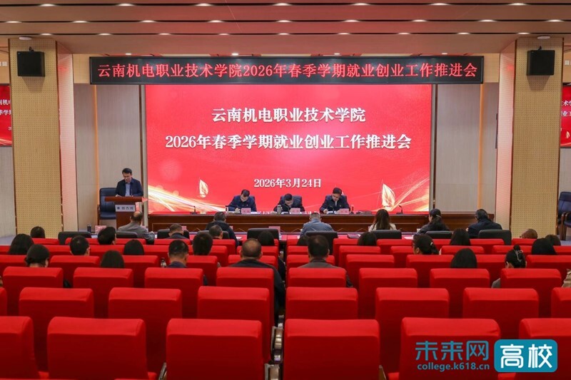 3月24日上午,云南机电职业技术学院召开2026年春季学期就业创业工作推进会。学校党委书记赵伟,党委副书记、校长沈韬,党委委员、副校长杨旭,相关职能部门负责人、二级学院党政负责人,2026 届毕业班辅导员及就业工作相关人员参加了会议。会议由杨旭主持。