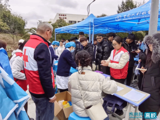 志愿者引导同学们有序完成信息登记与健康检查,整个流程组织有序、高效推进。