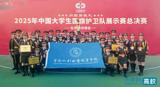 云南水利水电职业学院国旗护卫队以昂扬的斗志、整齐的步伐和磅礴的气势,在强手如林的赛场上展现了云水职院学子的独特风采,并最终荣获女子团体第三名(季军)、女子队列二等奖、女子升旗展示二等奖、男女混编队列三等奖和体育道德风尚奖,本次总决赛也是学校团体总分首次进入全国前三名。