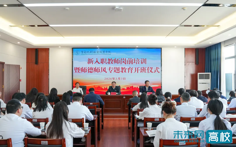 3月3日,云南水利水电职业学院2026年上半年新教师入职岗前培训暨师德师风专题教育班正式开班。学校党委书记马志宇,党委副书记、校长黄海燕,学校相关职能部门、各二级学院负责人及33名新入职教师参加。开班仪式由学校党委委员、副校长林玲主持。