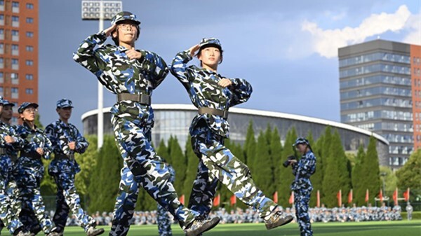 张荣祥宣读嘉奖令,学校领导和承训部队首长为军训先进集体和优秀个人颁奖。应中元作2025级学生军训工作总结。