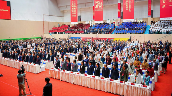 马志宇在致辞中指出,七十年来,学校始终与祖国同行、与时代共进,扎根云岭大地,培育万千桃李英才,为国家和云南水利电力事业和经济社会发展提供了有力支撑。