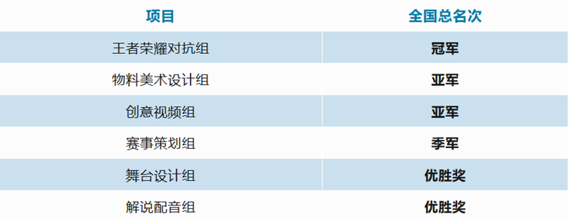 王者荣耀对抗组项目直接拿下全国冠军!将10000元奖金轻松收入囊中!物料美术设计组斩获全国亚军,5000元奖金!物料美术设计组全国亚军,创意视频组斩获全国亚军,获5000元奖金,每一个精彩画面都被创意制作直接拉满!