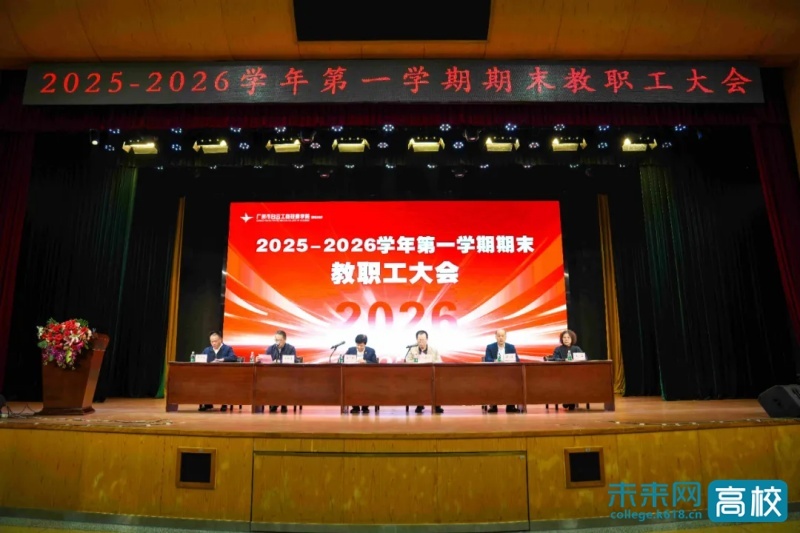 1月17日下午,广州市白云工商技师学院召开2025-2026学年第一学期期末教职工大会。学校党委书记李孟强,执行校长肖军田,副校长赵顺灵、周强、李多成,校长助理江少容等领导以及全体教职工出席本次会议,会议由赵顺灵主持。