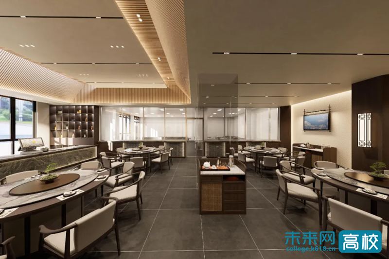 谁说烟火气不能拥有高级感?在7号楼一层,曾经传统的中餐厅实训室即将华丽转身。从平面布局图到落地呈现,设计师将“光影”与“质感”发挥到极致。学生们在这样的环境里研习菜品,每一次实操都像是一场关于“食”的艺术创作。在这里,学到的不仅是火候与刀工,更是对美学的极致追求。