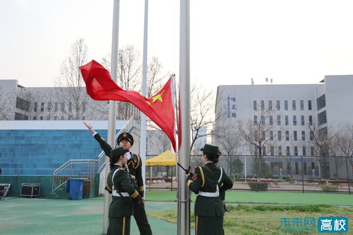 晨光熹微,清风送暖。国旗护卫队队员步履铿锵、英姿勃发,伴随着雄壮激昂的《义勇军进行曲》,鲜艳的五星红旗迎着朝阳冉冉升起、迎风飘扬,每一寸鲜红都映照着师生们的赤诚与热爱。全体师生肃立注目、高声齐唱国歌,精神抖擞、意气风发,既饱含对伟大祖国的赤子深情,也承载着对母校商院高质量发展的美好憧憬。