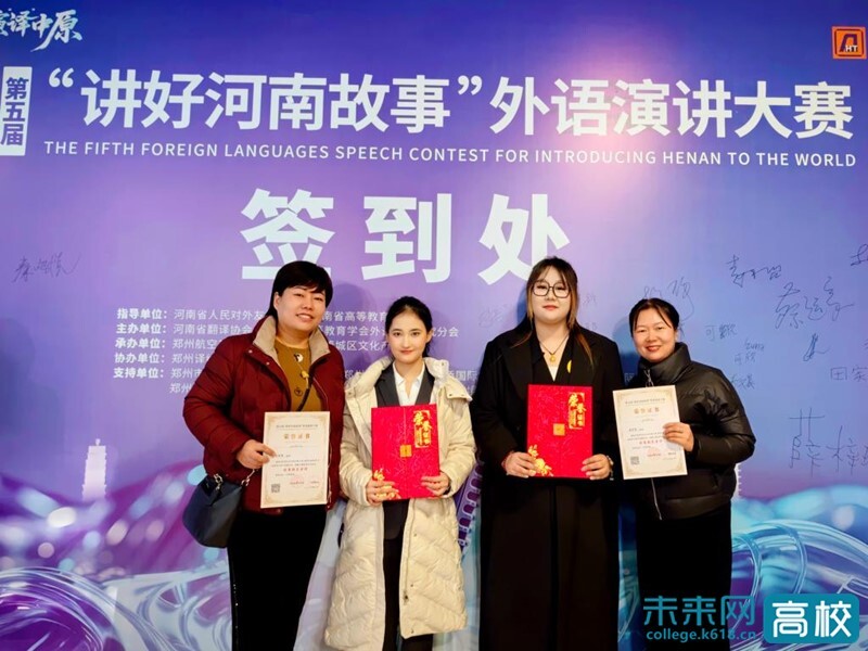 近日,第五届“讲好河南故事”外语演讲大赛决赛在郑州举行。河南职业技术学院经济管理学院学生贾宁杰荣获一等奖,刘美惠荣获二等奖。