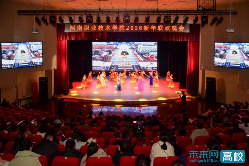 2025年12月31日晚,河南职业技术学院2026“薪火映初心 逐梦启新程”庆校庆迎新年联欢晚会举行。学校党委书记厉励出席并发表2026年新年贺词。学校党委副书记、校长夏新颜出席并致辞。全体校领导、在职教职工、老干部代表以及演职人员欢聚一堂,在光影交织、歌舞飞扬中,共同回望奋斗足迹、礼赞时代功勋、擘画未来蓝图,凝聚迈向新征程磅礴伟力。