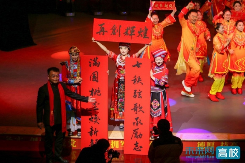 在热烈的掌声中,主题晚会正式拉开帷幕。整场晚会以“薪火映初心 逐梦启新程”为主线,通过“薪火相传 守初心”“杏坛风华 展风采”“同心致远 向未来”“逐梦远航 谱新篇”四个华彩篇章,为在场教职工呈现一场融思想性、艺术性、教育性于一体的视听盛宴。由师生自编自演的精彩节目,温情隽永、激昂奋进,艺术再现学校七十一年筚路蓝缕奋斗史诗,生动诠释“职教报国、技能强国”时代担当,充分彰显全体河职人团结进取、追求卓越的精神风貌。整场晚会气氛热烈、暖意融融。