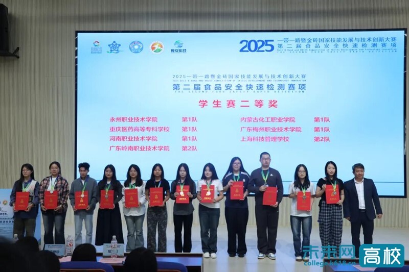 近日,2025“一带一路”暨金砖国家技能发展与技术创新大赛第二届食品安全快速检测赛项全国总决赛成绩公布。河南职业技术学院食品工程学院学生团队凭借扎实的专业基础、规范的操作技能和出色的临场发挥,从全国75所院校的500余名参赛选手中脱颖而出,勇夺一金一银,充分展现了学校在食品质量与安全领域的教学实力和人才培养成效。