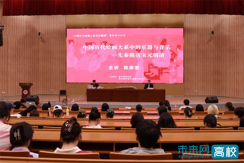 10月19日,以“中国历代绘画大系中的乐器与音乐——先秦隋唐宋元明清”为主题的学术讲座在嘉兴学院梁林校区举办。该讲座是“中国历代绘画大系与天籁阁”系列学术讲座之一,由嘉兴学院图书馆和中国历代绘画大系研究中心联合主办。嘉兴学院特聘教授、吉他演奏家陈彦宏主讲。嘉兴学院党委副书记、中国历代绘画大系研究中心主任吴云达主持讲座。嘉兴市文联三级调研员傅琦红出席讲座。