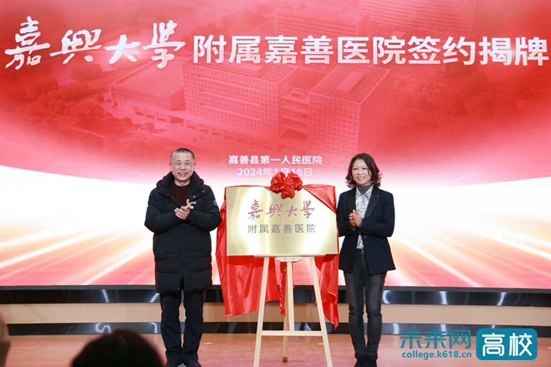 1月18日,嘉兴大学附属嘉善医院签约揭牌仪式在嘉善县第一人民医院举行。中国工程院院士、嘉兴大学校长陆军,党委委员、副校长(主持日常工作)张琦,嘉善县委常委、副县长陶红亚等出席仪式。