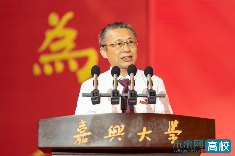 嘉兴大学领导沈希、陆军、钱方明、陈新友、张琦、王立玮、於建明、陈立力等出席典礼。典礼由学校党委副书记陈立力主持。