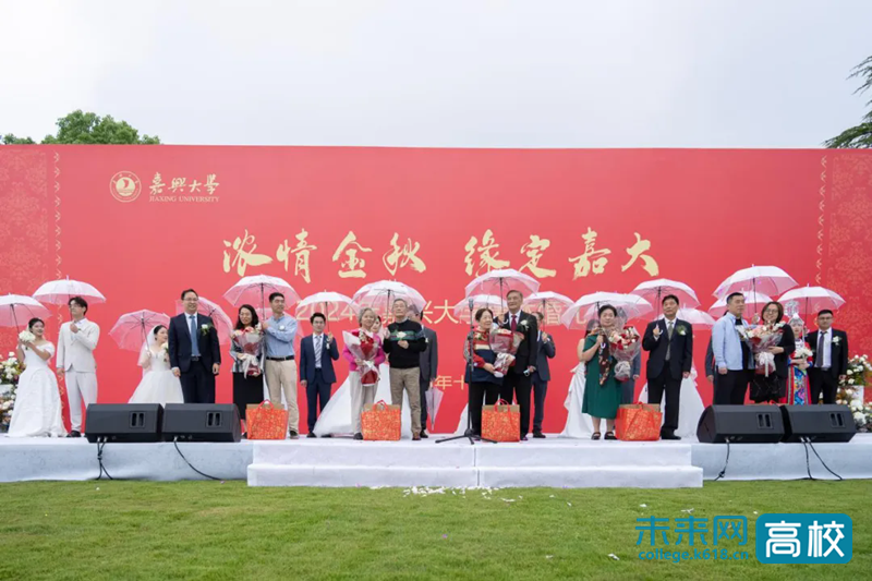 百十嘉大,百年好合;百十华诞,世纪真爱。10月7日上午,在嘉兴大学办学110周年校庆之际,“浓情金秋,缘定嘉大”校园集体婚礼在学校梁林校区东草坪举行。