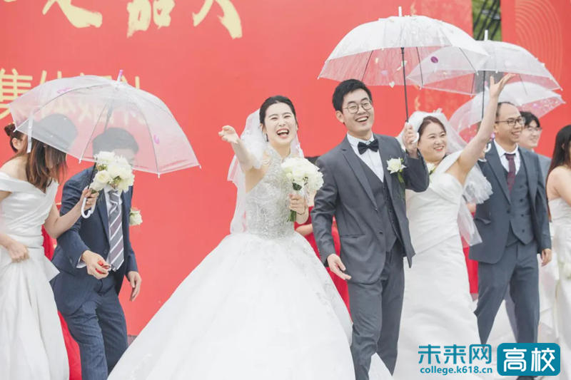 此时此刻,空气中弥漫着淡淡的花香和幸福的气息。新人们还共同为校园内的爱情树浇水,一同乘坐花车游览校园。婚礼在一边抛洒糖果、放飞气球一边演唱《爱的华尔兹》 中圆满礼成。(通讯员:周清)