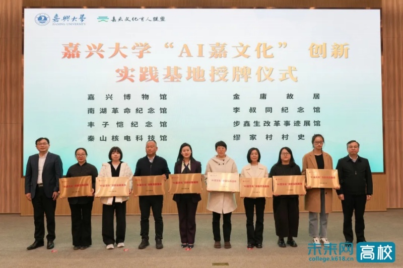 梅德庆与顾建忠共同为嘉兴博物馆(马家浜博物馆)、南湖革命纪念馆、秦山核电科技馆、金庸故居、缪家村村史馆、步鑫生改革事迹展馆、丰子恺纪念馆、李叔同纪念馆等8家文化场馆授予“嘉兴大学‘AI嘉文化’创新实践基地”牌匾,标志着校地协同深化“AI+文化”育人迈上新台阶。