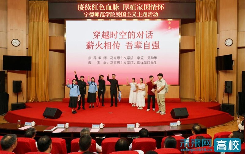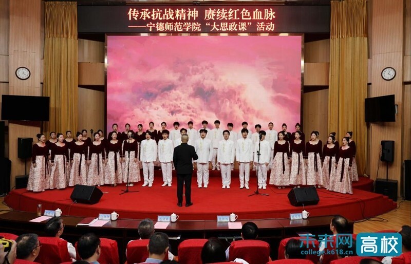 9月23日下午,宁德师范学院以“传承抗战精神,赓续红色血脉”为主题,上演了一堂形式新颖、内容生动的大思政课,通过“一首歌、一个故事、一节课、一封家书、一部情景剧”的创新形式,串联起看、听、诵、唱、悟等多维体验,让师生在沉浸式思政课堂中传承红色基因,在缅怀先烈中坚定报国之志。
