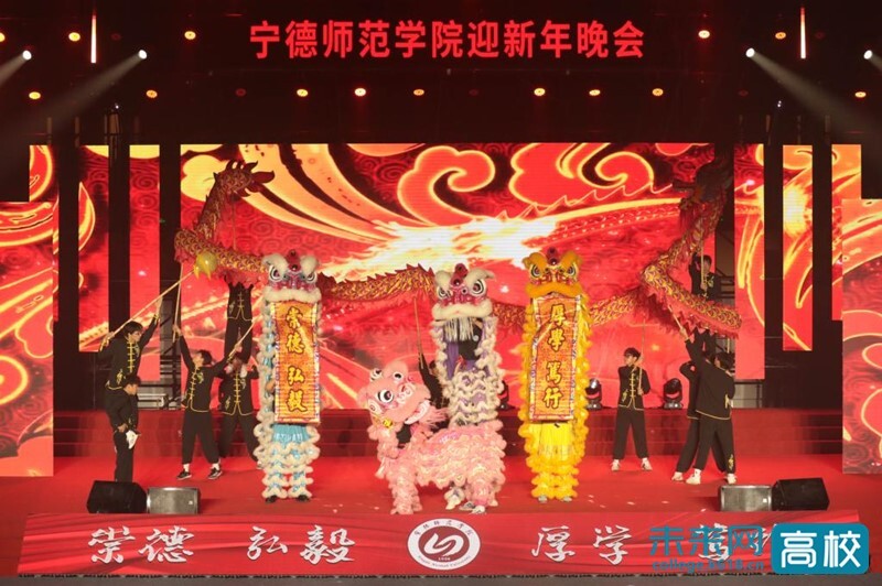 2025年12月30日晚,宁德师范学院举办薪火相传,筑梦新章——迎新年晚会。全体校领导、安发(福建)生物科技有限公司董事长高益槐、宁德市社科联主席邱树添、市文联党组书记郑家志和宁德市教育局、科技局、公安局、共青团宁德市委,中国移动宁德分公司、福建宁德农村商业银行股份有限公司、民生银行宁德分行、兴业银行宁德分行、建设银行宁德分行、宁德市交投电子信息有限公司、宁德市大健康产业联合会、青拓集团有限公司、宁德新能源科技有限公司、安波电机(宁德)有限公司、宁德思客琦智能装备有限公司等有关共建单位相关负责人出席晚会现场,学校离退休教师代表,各部门、各二级学院、附属医院负责人,教职医护员工代表,学生代表2300多人观看了晚会。