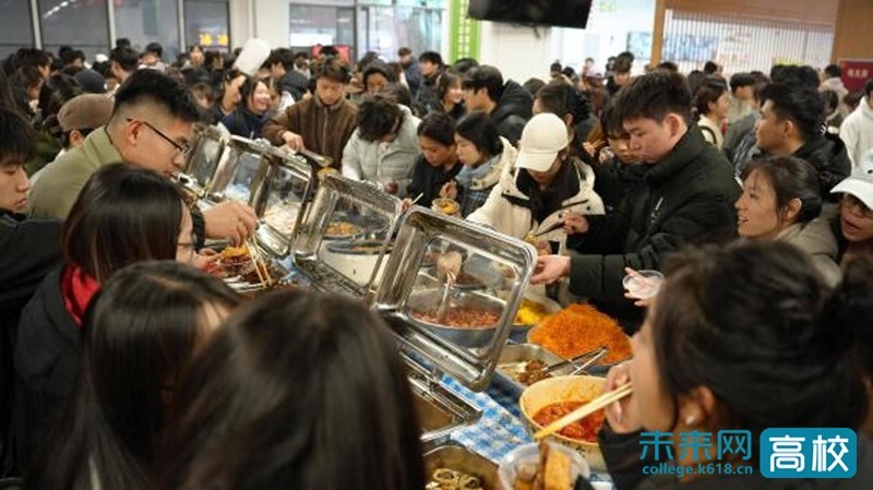 胥万兵在致辞时首先向全校师生致以了诚挚的新年祝福。他指出,美食节既是传承中华饮食文化的盛宴,更是浸润心灵的育人课堂。活动特设集体生日环节,30名近期过生日的学生代表与校领导并肩分切蛋糕,全场合唱生日歌,传递校园温情与学校关怀,浸润每个人心田。现场热闹非凡,南北风味美食齐聚一堂,50余种美食品鉴、6种特色菜品展示与2件创意食材雕塑艺术品相映成趣,让互动活力充盈在氤氲烟火气中。