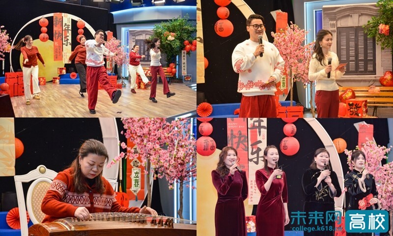 在“暖心慰问”环节,学校领导为机关教职工代表送上满载深情厚谊的新春慰问礼包。在文艺表演环节,古筝与钢琴二重奏《草木不朽》将古典韵律与现代琴键巧妙融合,带来高雅的艺术享受。在“心声交流”环节,四位教职工代表分享工作感悟与新年展望,朴实而真诚的话语拉近了彼此的距离,展现了机关人昂扬向上的精神风貌。在游戏互动环节,现场气氛热烈、欢声雷动。“正话反做”“你划我猜”等团队游戏妙趣横生,既考验反应能力,又增进了同事间的默契。