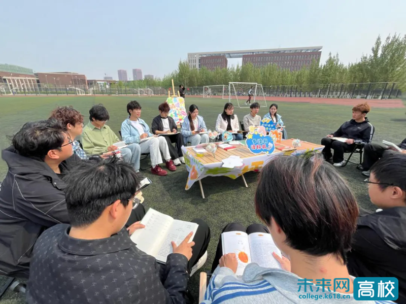 近日,由学院团委广播站策划的“书香浸润校园,阅读点亮心灵”草坪读书分享会在风雨操场举办。活动现场,团委实岗锻炼干部王柔健老师担任分享嘉宾,结合自身阅读经历,从书籍内容、个人感悟、生活启发等维度展开深度分享,解读书中经典片段,用生动讲述带领同学们走进文字背后的世界。在随后的学生分享环节,同学们踊跃发言,一起畅谈经典名著中的人生哲理,分享散文诗歌带来的心灵触动,推荐实用书籍传递学习方法,勾勒出一幅充满书卷气息的青春画卷。