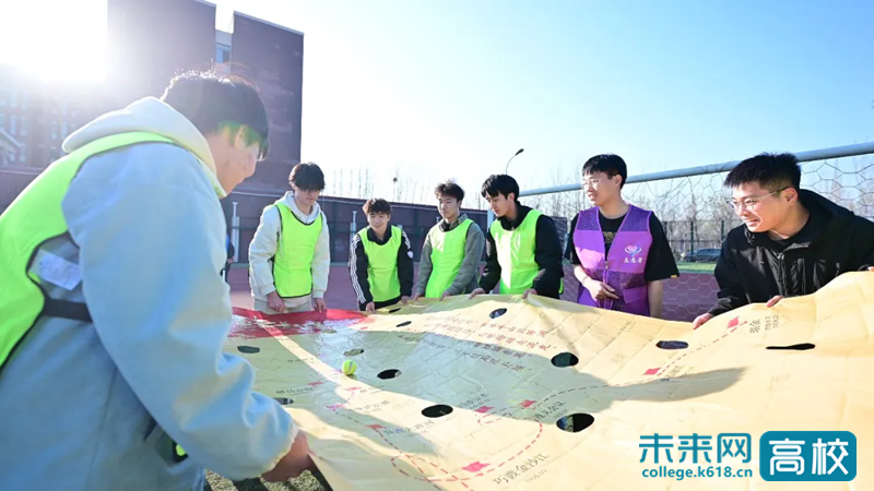 风雨操场的另一侧,一场主题为“传承红色基因,共创健康未来”的青年心理运动会正火热开展。在中国工农红军长征胜利90周年之际,学院将长征精神融入趣味运动中,精心策划推出“集结号角”“重走长征路”“勇担重任”“智闯雄关”“英勇投弹”“战地运粮”及“同心鼓·共奋进”七大心理运动项目。同学们齐心协力、奋勇争先,在协作比拼中感受团队的力量,在沉浸式体验中深刻领悟到伟大长征精神的核心内涵。
