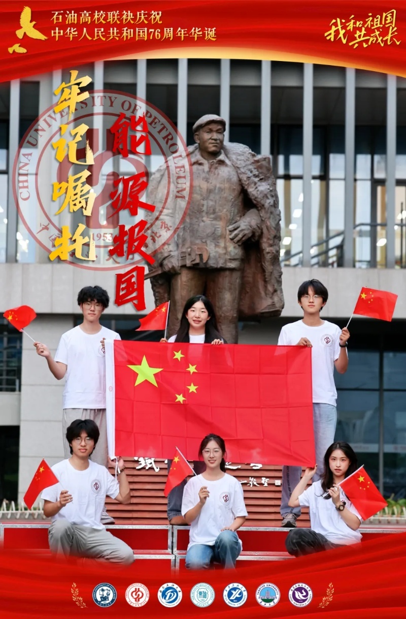 为祖国加油!七所石油高校携手而立,向祖国献上最赤诚的祝福!山河为证,他们以科技护能源命脉!青春作答,他们用实干为祖国加油!新征程上,石油高校将端牢能源饭碗,点亮万家灯火,守护国家命脉,以青春之我、奋斗之我,为中国式现代化建设注入源源不断的能源动力!汇聚“能源报国,能源强国”的强大力量,祝中华人民共和国山河无恙,国泰民安!(通讯员:曲楠)