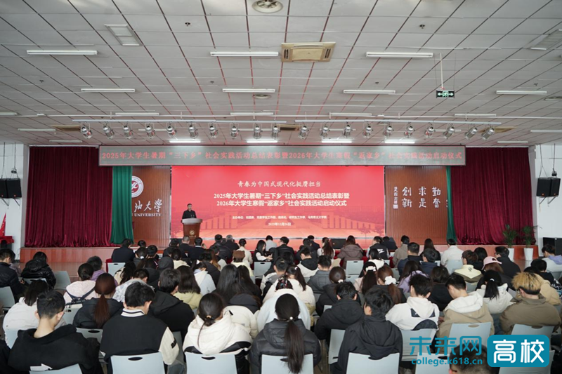 12月26日下午,西安石油大学2025年大学生暑期“三下乡”社会实践活动总结表彰暨2026年大学生寒假“返家乡”社会实践活动启动仪式举行。学校副校长种宇宏出席会议并讲话,党委学生工作部、校团委、教务处、研究生工作部、马克思主义学院等单位负责人,各院(系)团委(团总支)书记,2025年大学生暑期“三下乡”社会实践活动受表彰师生代表,2026年大学生寒假“返家乡”社会实践活动师生代表共500余人参加会议。