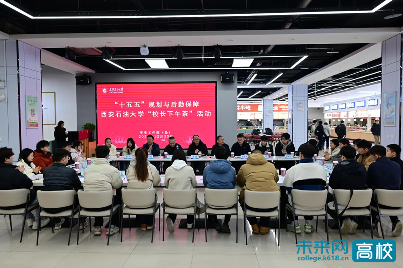 2025年12月30日下午,西安石油大学举办“校长下午茶”师生交流活动。学校党委委员、副校长赵健与来自各院(系)的24名本硕学生代表面对面交流,围绕学校“十五五”发展规划与后勤保障等议题深入探讨。基建处、后勤处、学生工作部、学校团委等相关职能处室负责人参加活动。活动由学校团委书记王刚主持。