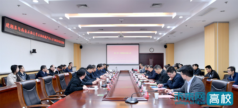校地对接交流会在西安石油大学举行,西安石油大学副校长赵健、种宇宏,盐城市科技局副局长、建湖县党组成员、科技镇长团团长陈永井,中共建湖县委组织部副部长、人才办主任孙盘桧及双方相关部门负责人、企业家代表参会,会议由机械工程学院院长刘少胡主持。